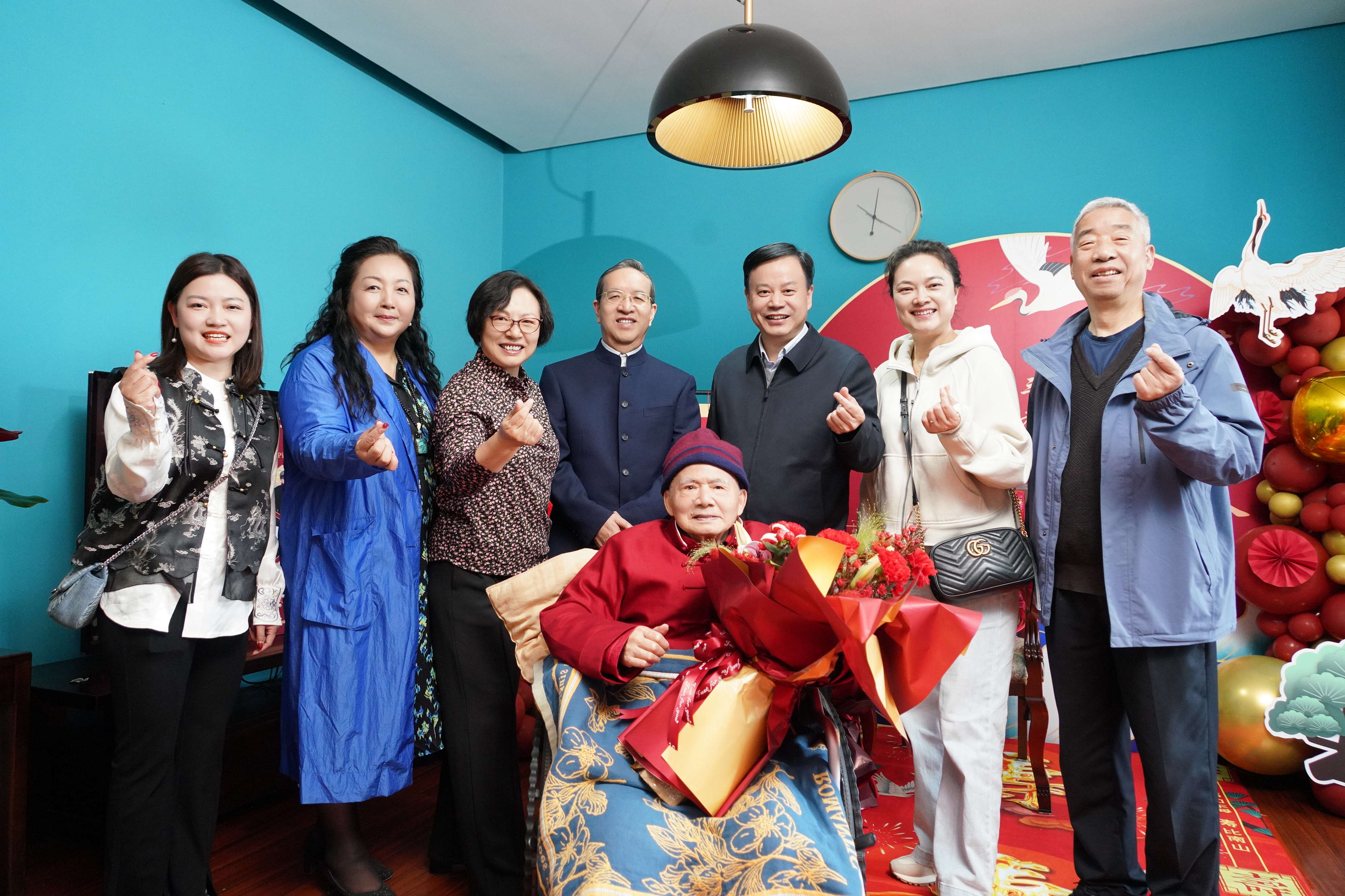 春回大地,百花争妍。3月23日,学校党委书记谢永红一行来到退休教师李允恭家中祝贺。今天是李允恭老师百岁寿辰,同时也是他向学校捐款的日子。