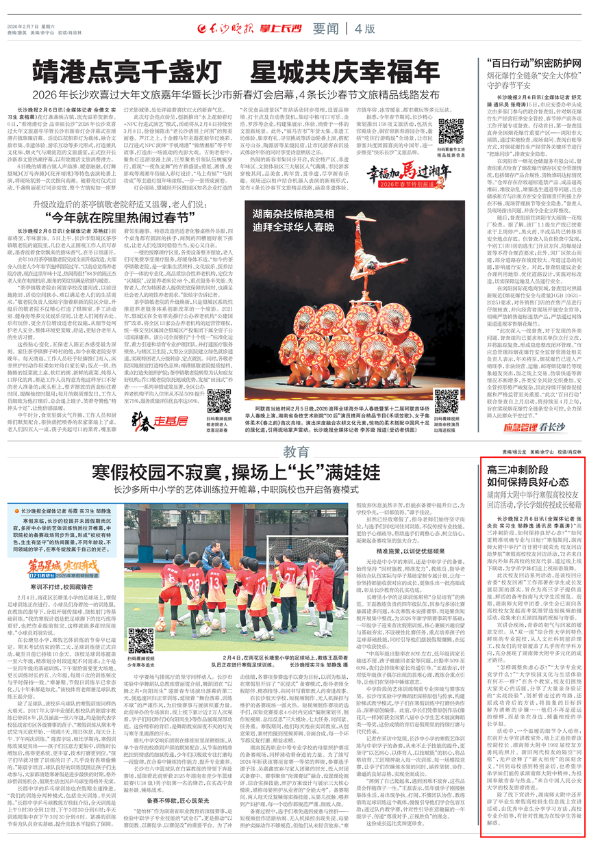长沙晚报2月6日讯(全媒体记者 张炎炎 实习生 邹静逸 通讯员 李嘉涛)“高三冲刺阶段,如何保持良好心态?”“如何更精准明确专业与目标?”寒假期间,湖南师大附中举行“百廿附中载荣光 校友回访助梦航”寒假高校校友回访活动,72名来自海内外知名高校的校友代表,通过线上线下联动,为学弟学妹们送上祝福语鼓舞。
