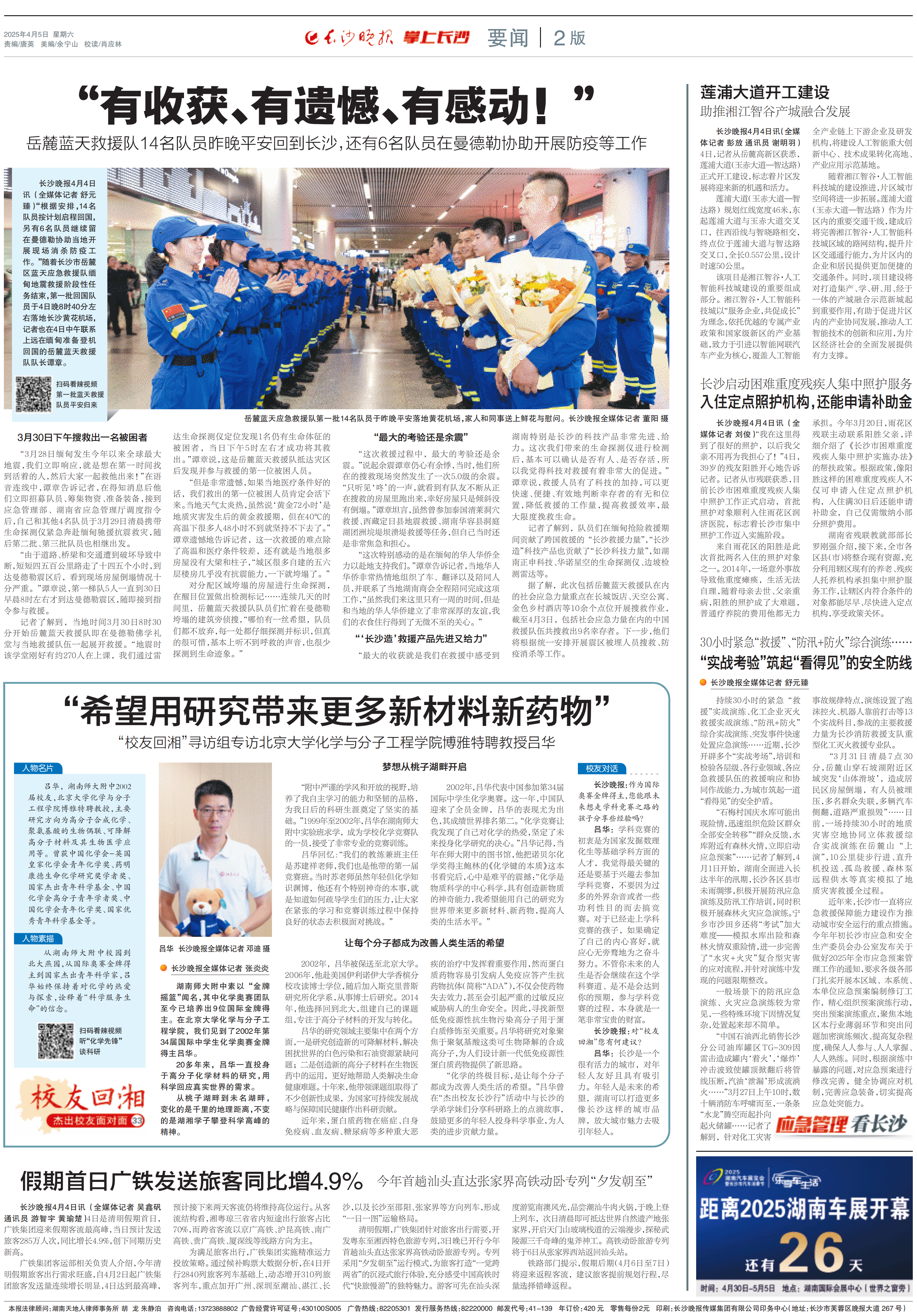 【长沙晚报】“希望用研究带来更多新材料新药物”|“校友回湘·杰出校友面对面”专栏