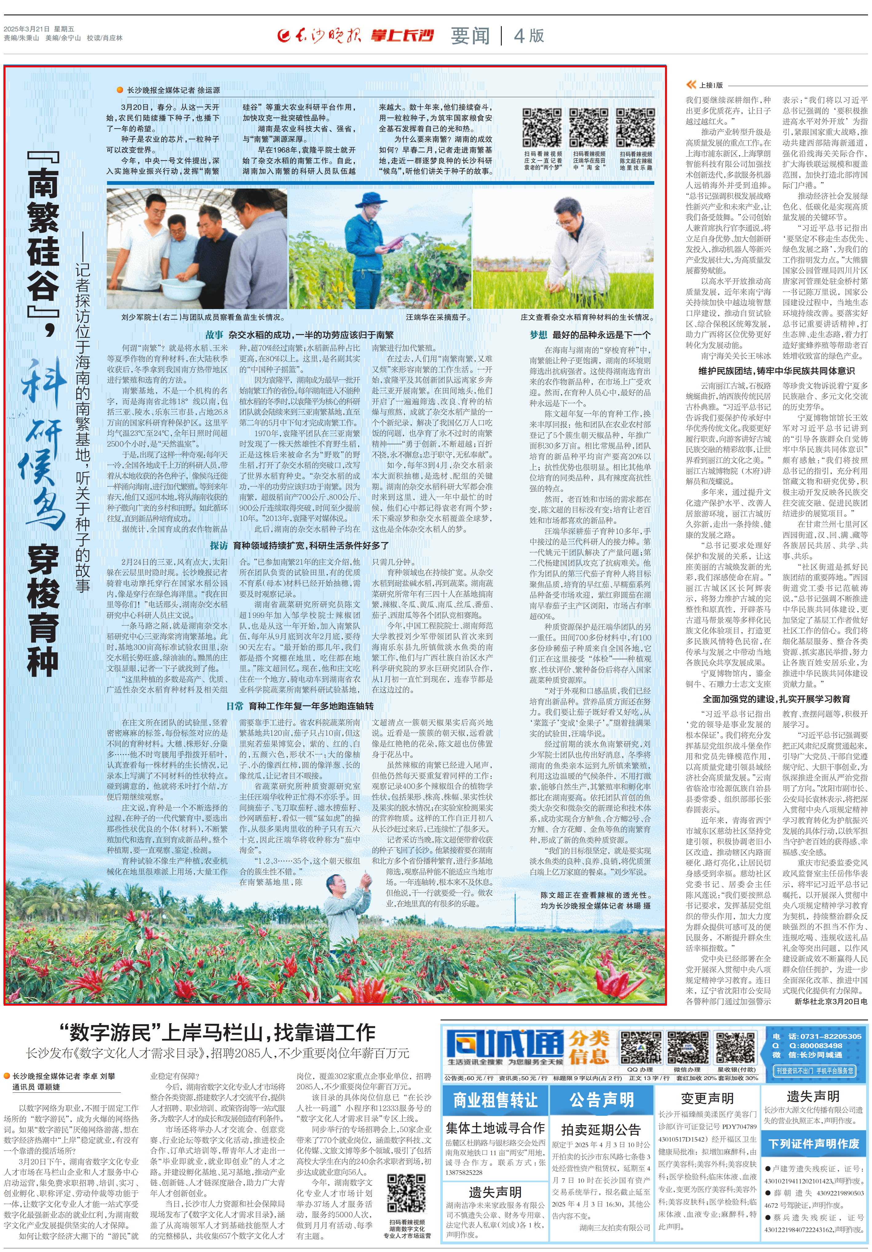 【长沙晚报】“南繁硅谷”,“科研候鸟”穿梭育种
