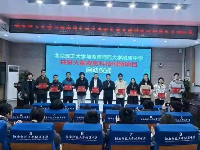 1月15日,北京理工大学与湖南师大附中共研火箭发射科技创新项目启动仪式在湖南师大附中举行,北京理工大学陈和教授、湖南师大附中苏建祥副校长参加活动,启动仪式上还为北京理工大学10位学生颁发了湖南师大附中科学教育导师团专家证书。