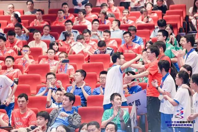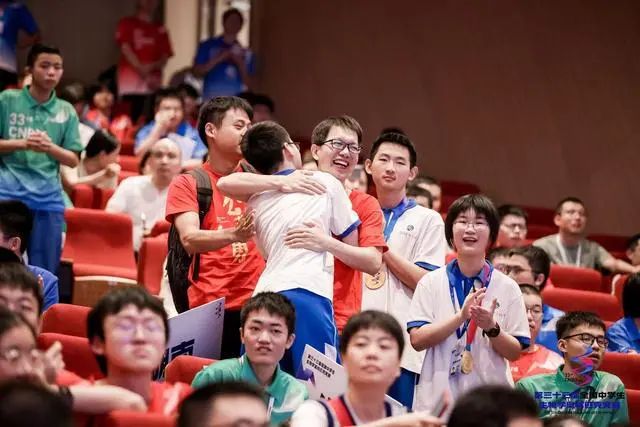 国赛现场公布成绩时,同学们激动地抱着黄俊老师