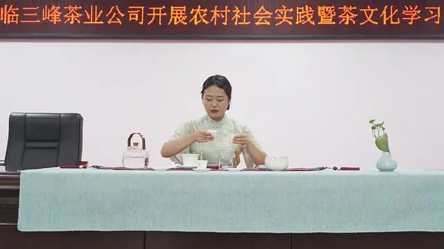 在茶文化学习课堂上,三峰茶业公司负责人从茶的历史讲起,对茶的功效,如何品茶、选茶、泡茶、习茶等方面向师生们进行了深入浅出的讲解;茶艺老师从执壶、持杯、闻香再到斟茶、品汤、致谢,为大家现场作了沏茶示范,让大家体验识茶、泡茶和品茶,在品味茶香与慢饮细酌中感受中国茶文化的独特魅力和深厚内涵。
