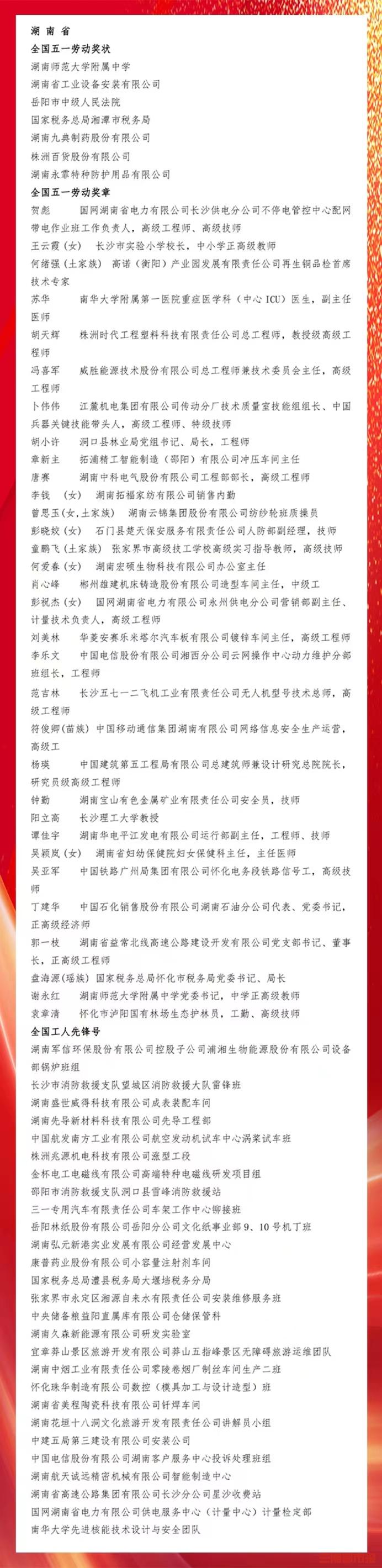 【华声在线】全国五一劳动奖状、奖章和全国工人先锋号名单出炉,湖南这些集体、个人上榜