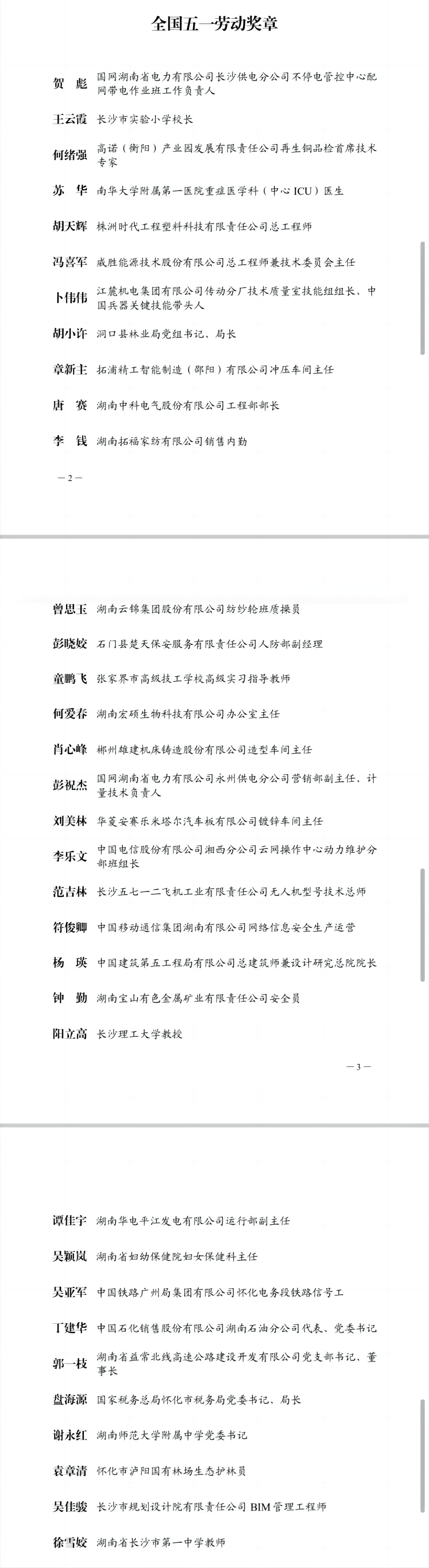 【湖南日报】湖南34人荣获全国五一劳动奖章 7家集体获得全国五一劳动奖状,27个集体获评全国工人先锋号