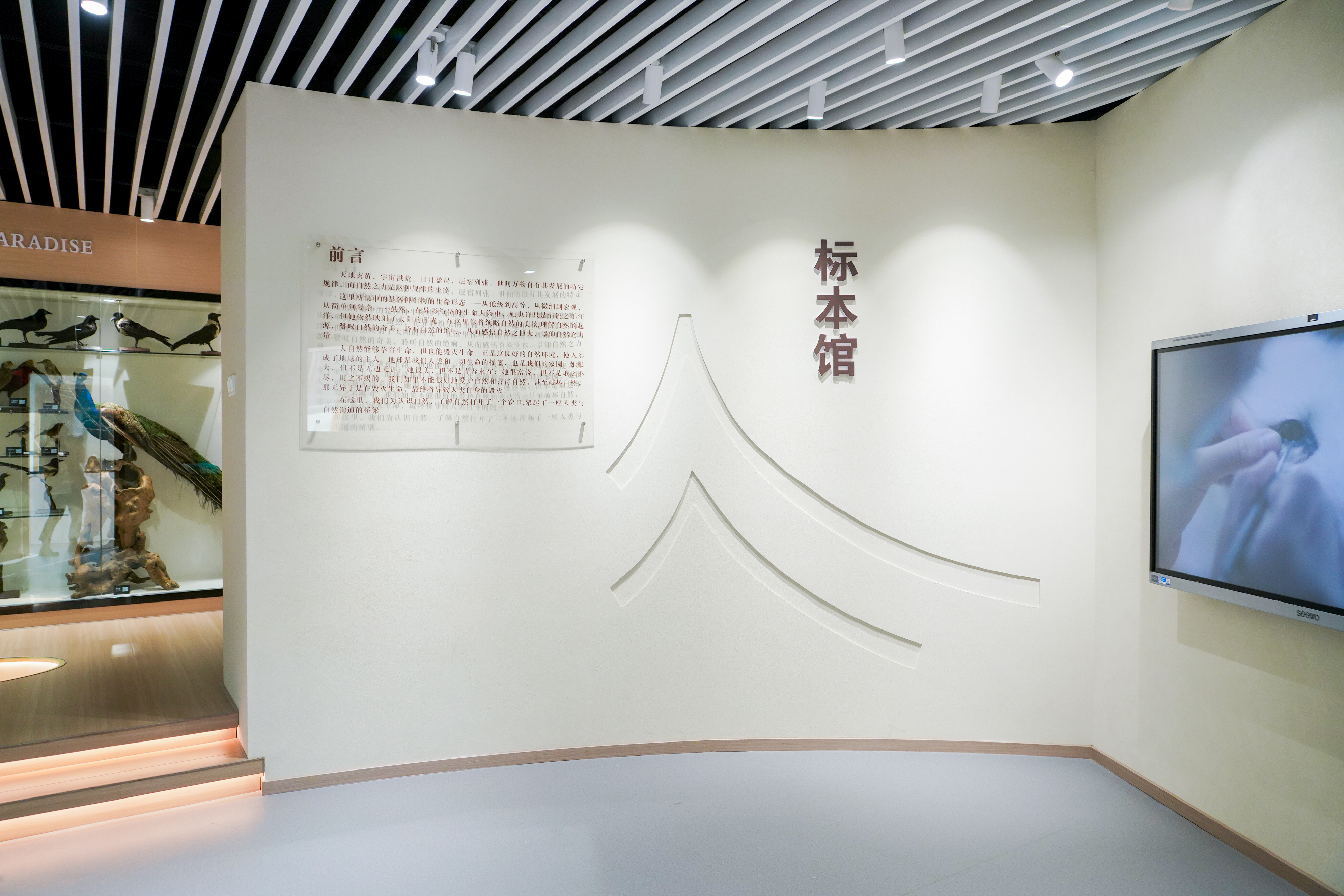 标本馆总面积约200多平方米,陈列的标本种类有800多种,馆内分为“生命的起源与进化”“鱼类”“两栖爬行类”“鸟类”“哺乳类”“昆虫部落”“植物王国”“海洋生态系统”“镇馆之宝”“森林生态系统”等多个展区。