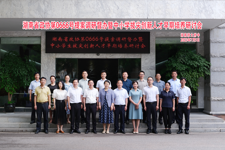7月5日,省政协《关于加强中小学拔尖创新人才早期培养的建议》提案调研督办暨中小学生拔尖创新人才早期培养研讨会在湖南师大附中召开,全国、省、市三级政协委员,各大名校专家,省教育厅、人社厅、科协等办理单位相关负责人,以及省政协提案委、文教卫体和文史委相关负责人围绕提案办理情况集中研讨。