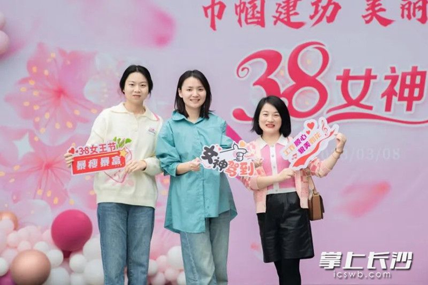 “美貌与智慧并存”“最强主角”“不卑不亢”……当天,湖南师大附中女教职工手持标语,在学校专门打造的打卡墙前,展示巾帼风采。“咔嚓咔嚓”,学校邀请的专业摄影师快速按下快门,为女教职工记录下一个个美丽的瞬间。据悉,为丰富女教职工业余文化生活,绽放女教职工风采,加强女教职工沟通,提高女教职工幸福感,湖南师大附中工会策划了“玫瑰书香”女职工主题阅读活动、女职工素质达标竞赛评优活动、女教职工踏青团建活动等系列活动。