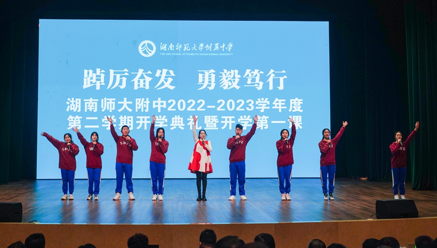 我们的学校,是追求卓越的学校。过去三年,也许疫情“偷”走了一些我们行走的空间,但它偷不走我们的春天。2022年,学校又是喜报频传:“学校被确认为湖南省“十四五”教育科学研究基地,该基地是唯一设立在中小学校的省级研究基地;6人入选清华大学“丘成桐数学科学领军人才培养计划”,3人入选北京大学“物理学科卓越人才培养计划”,入选人数均居全省第一;校羽毛球队获全国中学生羽毛球锦标赛男、女团体第一名,熊久久同学获湖南省第十四届运动会青少年击剑比赛金牌;学校入选世界顶尖中学联盟。新学期回到学校我们更是发现:功能教室全面提升、校园环境全面优化,新食堂也将投入使用。这一切,饱含了每一个学生的梦想与激情、离不开每一位老师的付出与汗水、展示了学校的勇毅与开拓,凝聚着所有附中人团结奋斗的活力和冲劲。学校再攀高峰,强在奋楫笃行。