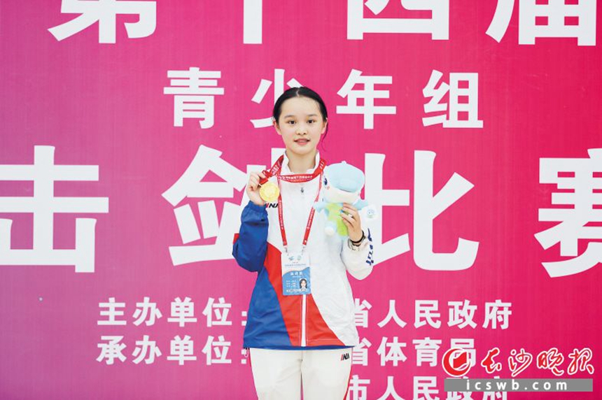 长沙晚报9月4日讯(全媒体记者 刘俊 通讯员 梁文婷)身着校服,她是校园里的文雅学子;穿上护具,她是赛场上的飒爽剑客。在近日举行的湖南省第十四届运动会青少年击剑比赛中,湖南师大附中高二学生熊久久获得U18女子花剑组冠军。3日,这位16岁“击剑少女”接受记者采访,分享了自己的成长故事。