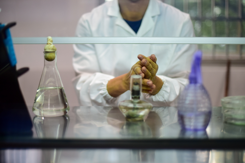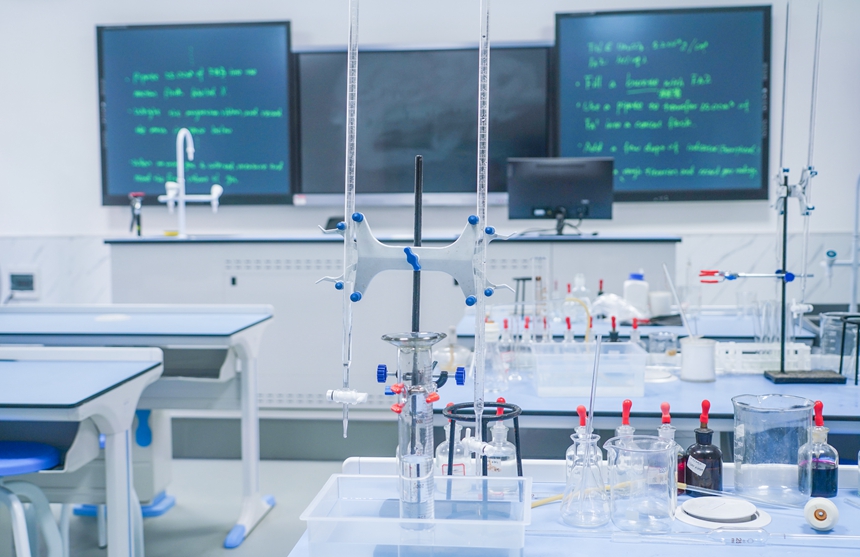 化学仪器室的器材设备琳琅满目,你可以看到各晶莹剔透的玻璃仪器、酸碱pH计、晶体模型和导电率仪等,还可以看到数种光怪陆离的矿物晶体,从平日里司空见惯的碳酸钙,到鲜少接触的钠沸石,针状的、海绵状的、葡萄状的,形态各异,流光溢彩。