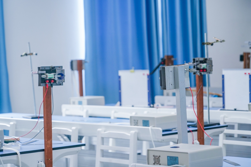 物理常规实验室共4间,每学期都会开设十几个分组实验,物理课本中的每一个实验都可在这里操作。常规实验室还有物理实验老师亲自制作的诸多实验仪器,即使市面上没有的器材,也能保证实验正常开设。