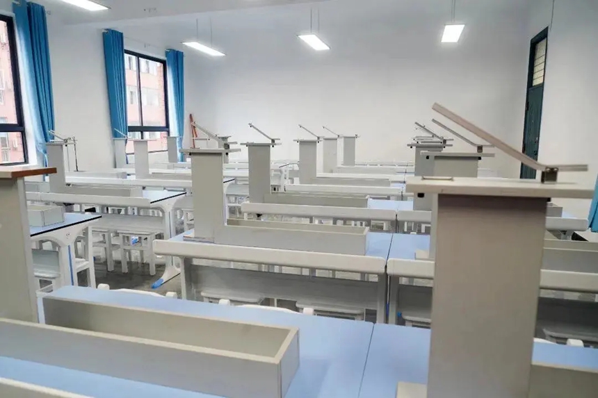 经过整体提质改造后的物理实验室面貌焕然一新,实验课桌美观大方、结实耐用,86寸一体机两边是手写光能板,每间实验室都装有大功率空调。实验室配备3D打印机、激光切割机、激光雕刻机等先进设备,为学生物理实验探究创造了良好的条件。
