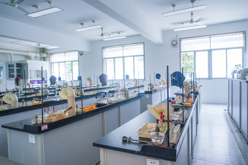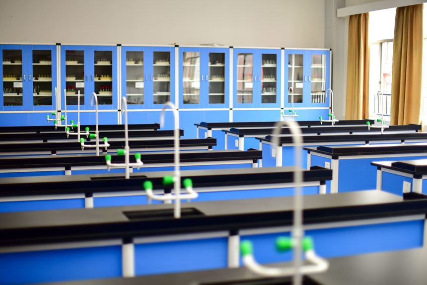 化学基础实验室共有三间,教室宽敞明亮,通风设施完善,可以满足每一位初三到高三的学生探索物质鬼斧神工般的变化之美。实验室有通风化操作台面,足够容纳一个班级开展学习活动,良好的实验条件不仅让同学们愉悦地快速掌握课本知识,也极大提高了同学们学习化学的热情。