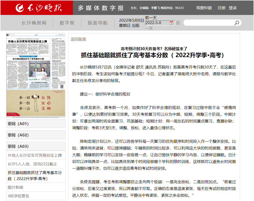 【长沙晚报】高考倒计时30天咋备考?湖南师大附中名师秘笈来了