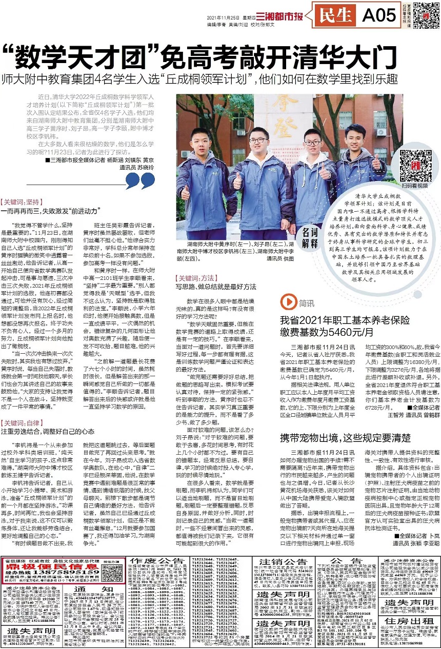 【三湘都市报】厉害了!湖南4名学子入围“丘成桐领军计划”,快看他们的成功关键词