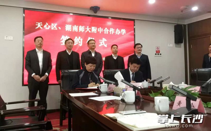 天心区代表、湖南师大附中代表进行签约。长沙晚报全媒体记者 王斌 摄