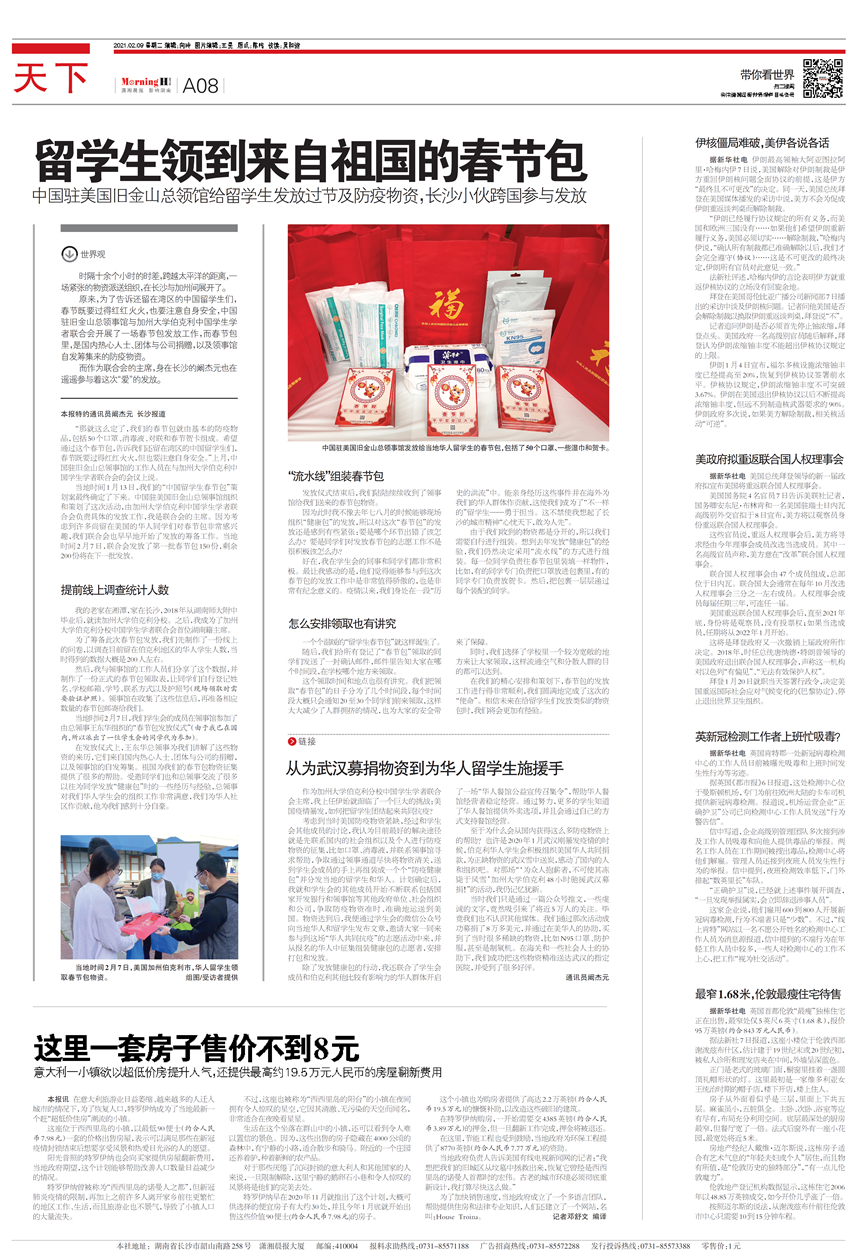 【潇湘晨报】留学生领到来自祖国的春节包:中国驻美国旧金山总领馆给留学生发放过节及防疫物资