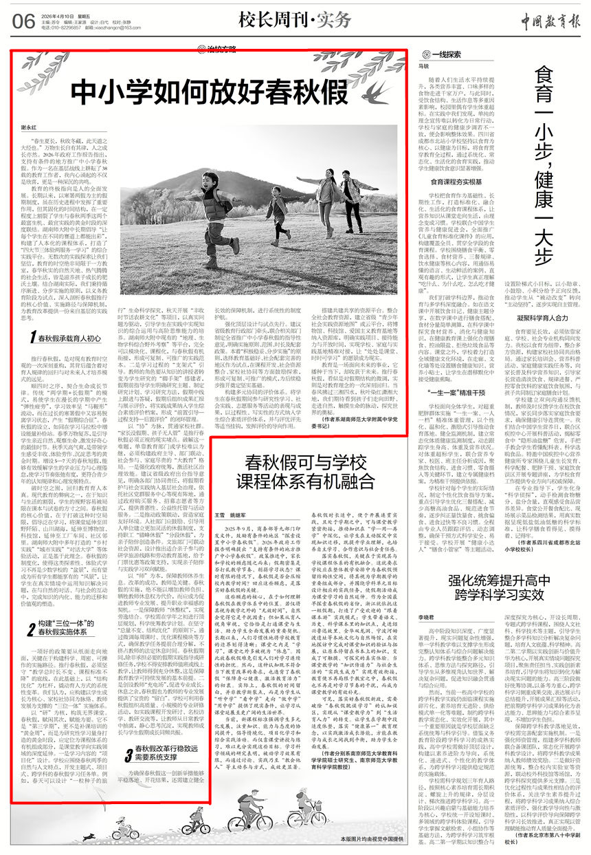 【中国教育报】谢永红:中小学如何放好春秋假