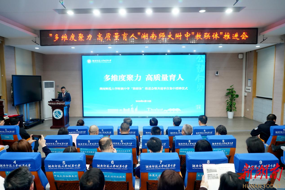 湖南日报4月16日讯(全媒体记者 杨斯涵 通讯员 梁文婷)为深化家校社协同育人,推动教联体建设提质增效,4月15日,湖南师范大学附属中学举行家校社协同育人“教联体”建设推进会暨共建单位集中授牌仪式。学校与湖南日报社、湖南省博物馆、国家超级计算长沙中心、中南大学湘雅三医院、湘江新区公安分局等49家社会单位携手,打破资源壁垒、凝聚育人合力。