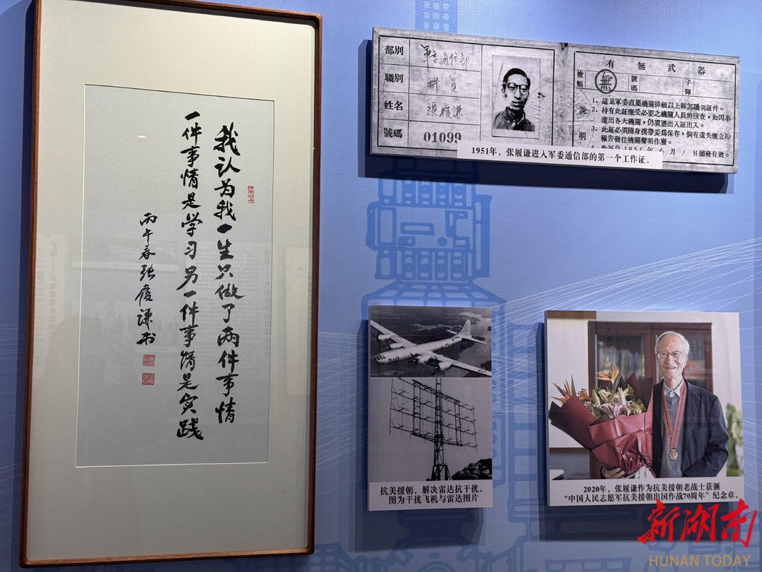 湖南师范大学附属中学校史馆内,张履谦院士的书法作品旁,一行行朴素的文字力透纸背:“我们一定要自力更生发奋图强早日拿出成果来”“我是党培养的,宁肯倒在实验室,也不愿躺在床上”……而另一边,何继善院士以“忠昭日月 气壮河山”为主题的书法,端庄沉稳,书写着对抗战英烈的崇敬与对和平的珍视。