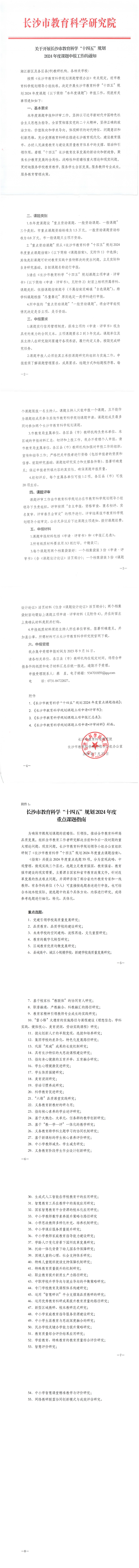 关于开展长沙市教育科学“十四五”规划2024年度课题申报工作的通知 来源:未知 发布时间:2024-08-08 浏览次数: 次 【字体:小 大】 附件1:2024年市课题申报评审书 附件2:2024年市课题申报汇总表 附件3:2024年市课题申报材料封面 点赞 收藏 分享到: 【打印正文】 相关内容