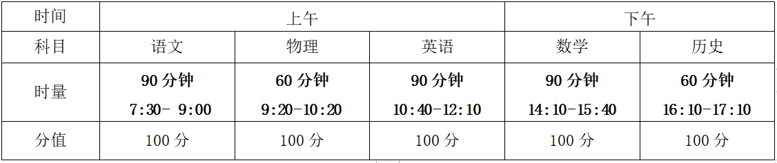(2)所有学生参加语文、数学、英语、物理、历史共5科的考试,历史为闭卷考试。考试成绩分两条线(语文、数学、英语、物理和语文、数学、英语、历史两个四科的成绩)评价,选取其中一个较优的成绩作为高一分班的重要参考依据。