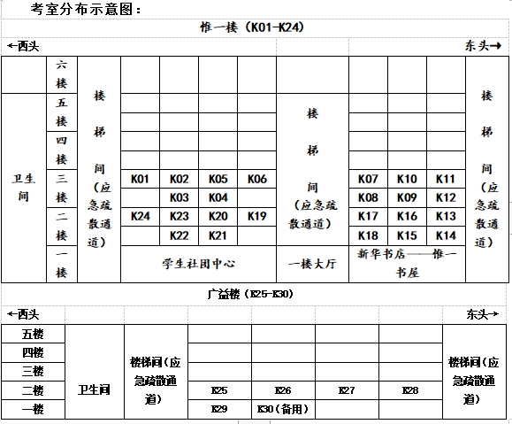 考室位置安排:惟一楼2-3楼,广益楼1-2楼。