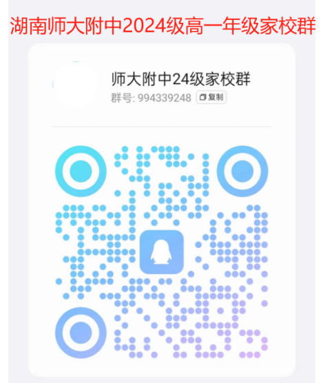 3.湖南师大附中高中2024级家校联系QQ群:994339248或QQ扫描二维码加入: