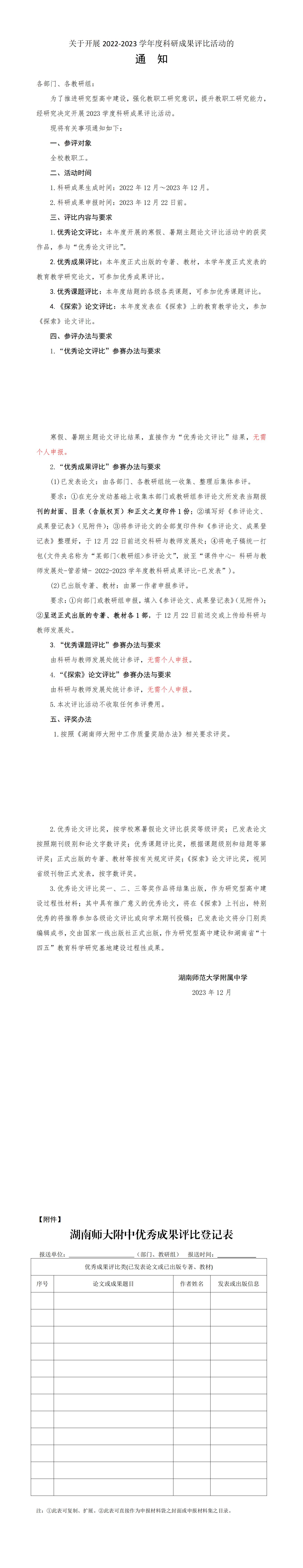 关于开展2022-2023学年度科研成果评比活动的通知