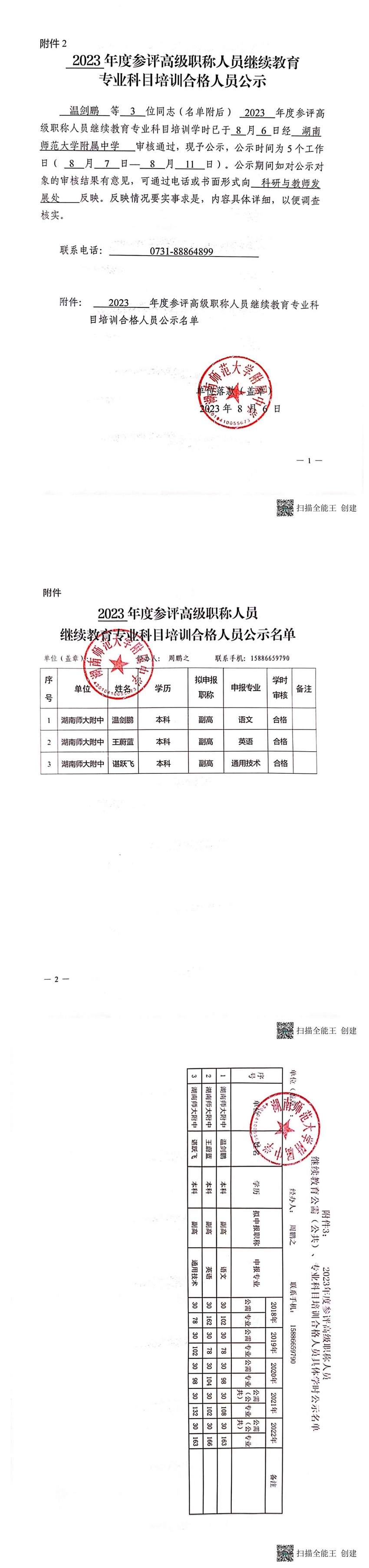 2023年度参评高级职称人员继续教育专业科目培训合格人员公示