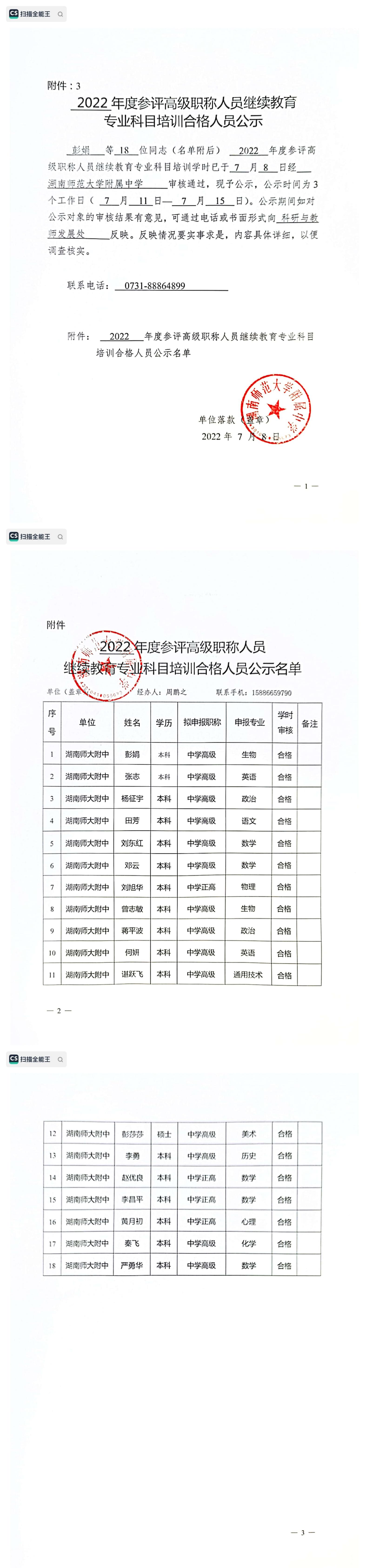 2022年度参评高级职称人员继续教育专业科目培训合格人员公示