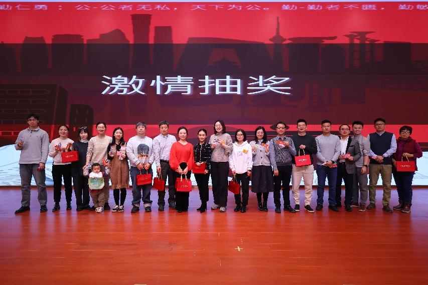 年会在轻松愉快的氛围中进行,抽奖环节将现场气氛推向高潮。极具母校元素的附中小熊公仔、钥匙扣、文化衫等纪念品让校友们倍感激动和期待,每一件礼品的赠出都伴随着喝彩声,欢声笑语传递于会场的每一个角落,形成一股温暖团结的集体力量。