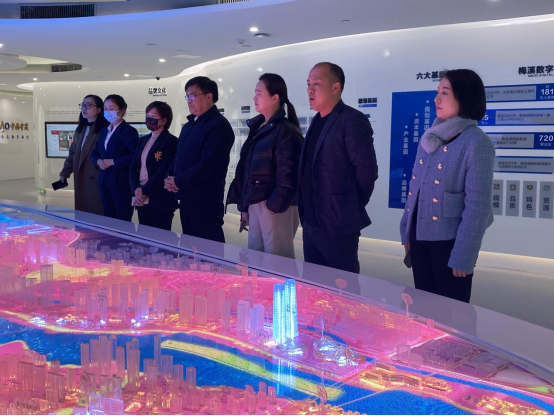 首先,校友会党支部全体党员在中国金茂华中区域公司党委副书记黄红梅的带领下参观金茂梅溪湖项目展示厅,她向我们介绍了金茂如何将规划、资本、产业、运营、协同、品牌六大基因根植于梅溪湖国际新城,来满足市民全生活周期,全工作周期,全生命周期的多元化需求。