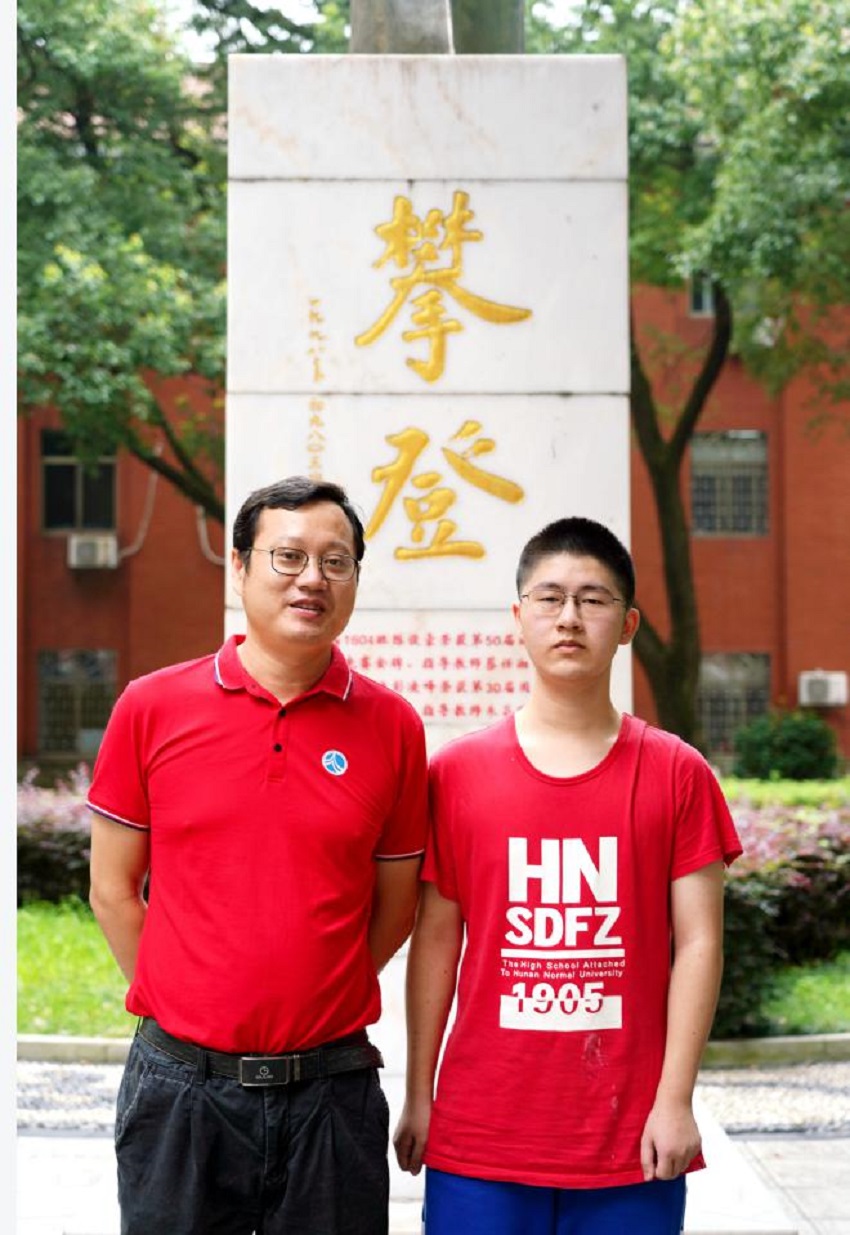 阎光溪与教练汤礼达老师 阎光溪校友就读的清华大学丘成桐数学英才班,对学生的数学天赋、综合素养等方面有着极为严苛的要求,每年认定全国总名额不超过 30 人,这个班也成为大家眼中的“数学天才班”。丘成桐数学英才班从 2018 年开班以来,一直没有湖南学子的身影。2020年,我校校友阎光溪通过层层选拔,入围了丘成桐数学英才班,成为丘成桐数学英才班上的第一位湖南籍学生。