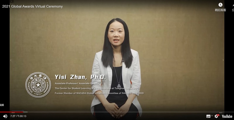 “引领之光”奖由全球学业咨询协会颁发给为协会多元文化、包容性作出重大贡献的成员。该奖于2010年开始评定,每年获奖者不超过一人,往年获奖成员均来自美国、英国、荷兰等欧美国家,詹逸思是11年来首位来自亚洲大学的获得者。詹逸思以视频连线的方式参加了2021年年会的颁奖典礼并进行致辞。面对全球新冠疫情给大学生学习发展带来的挑战,她以“智者不惑,仁者不忧,勇者不惧”为关键词,分享了源于东方中国传统文化的哲思和价值观。