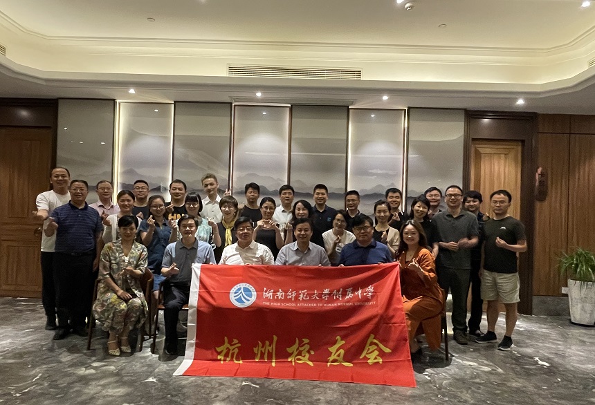 7月28日,湖南师大附中杭州校友会成立大会在杭隆重举行,学校校长、校友总会会长谢永红、党委书记黄月初、党委副书记彭荣宏、副校长兼工会主席、校友会常务副会长陈迪勋、纪检书记李春莲,副校长苏建祥,工会副主席兼校友会秘书长谭伟、校友会副秘书长焦畅等老师代表母校出席成立大会,与参加成立大会的校友亲切见面,共同就学校和个人的发展情况展开了深入交流。