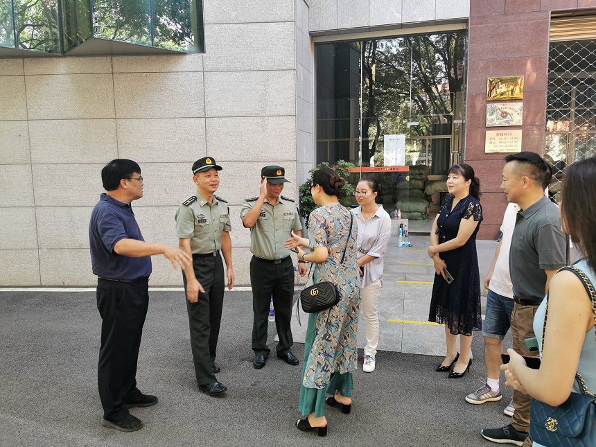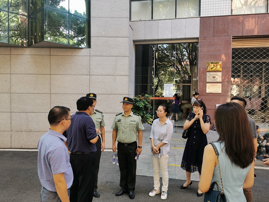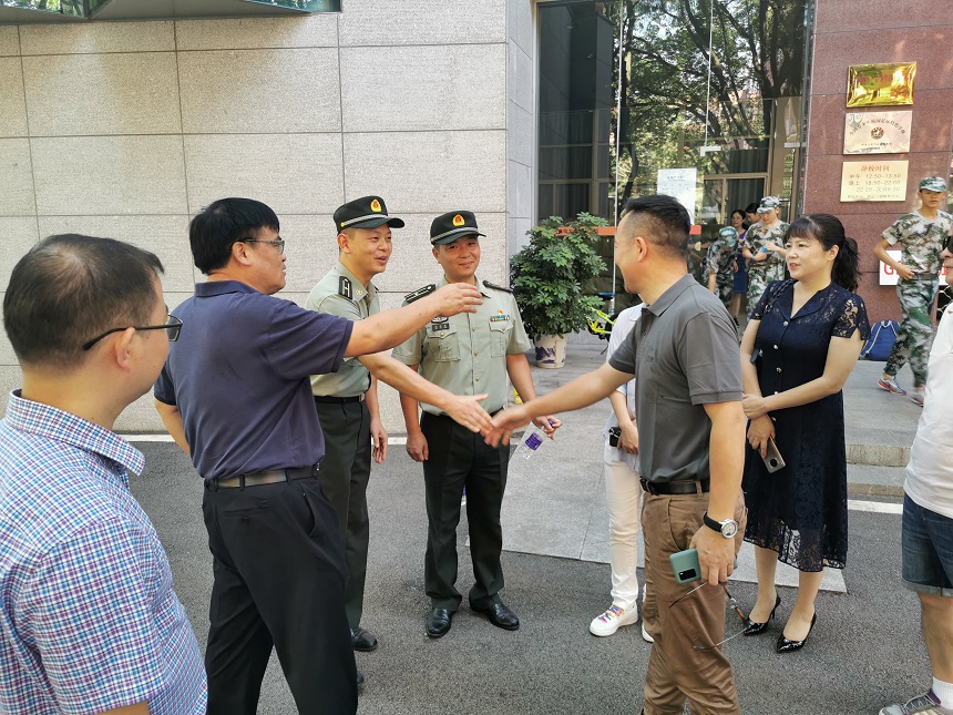 8月20日上午,湖南师大附中长沙校友分会理事长谢军、副理事长谭岳华、秘书长田晓萍、副秘书长李时锋、王天翼、袁思伊等一行回到母校慰问军训教官和师生,学校副校长兼工会主席陈迪勋热情接待了长沙校友分会校友们一行,并代表谢永红校长向长期以来对学校工作给予大力支持的长沙校友分会表示衷心的感谢,代表学校与工会副主席兼校友会秘书长谭伟、校办公室主任莫晖、德育与学生发展处主任吴卿、后勤与保卫处主任李智敏、七年级组长吴菲、高一年级组长王建、校友会副秘书长焦畅一道陪同校友们来到新生军训现场,亲切慰问正在紧张训练的全体师生和教官。