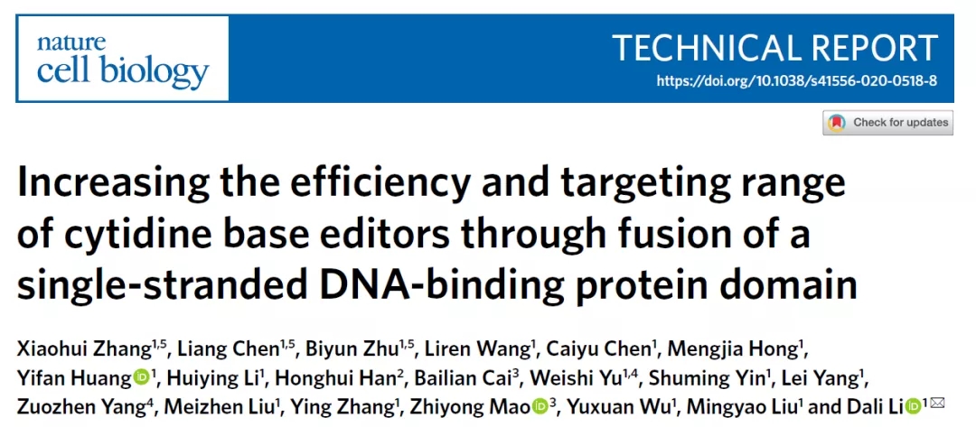 5.Wang, X. et al. Efficient base editing in methylated regions with a human APOBEC3A-Cas9 fusion.Nat Biotechnol 36, 946-949 (2018).