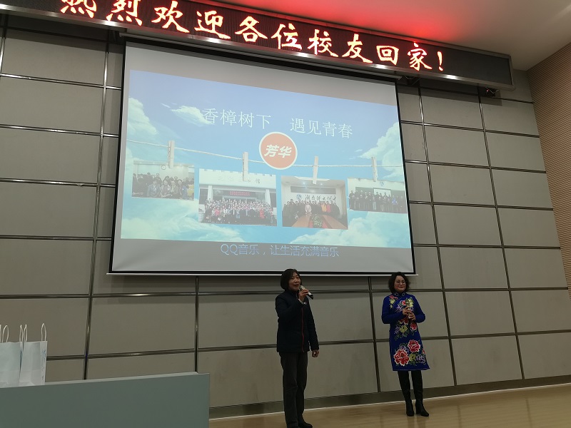 当天的长沙寒风凛冽、细雨绵绵,附中校园里却格外地热闹而温暖,会议厅坐无虚席,450余名校友返校出席年会,到会校友毕业时间跨度长达53年,副校长兼工会主席、校友会常务副会长陈迪勋,工会副主席、校友会秘书长谭伟,校友会副秘书长焦畅老师以及80高龄的退休教师高育寅老师出席了年会。年会由长沙校友分会副秘书长、85届校友叶蔚青主持。