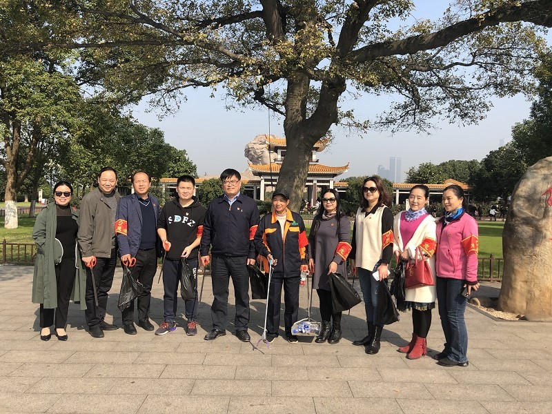接着,我们来到了橘子洲头,参加文明创建志愿者活动,清理道路两旁和绿地内的垃圾,助力全国文明城市建设。