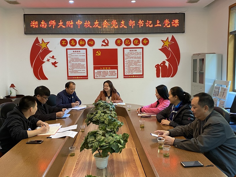 首先,在执中楼三会议室,支部书记谭伟上了一堂主题为《明初心、守初心、找差距、抓落实、明职责、担使命,推动学校校友会工作发展》的党课,谭伟从不忘初心,牢记使命”主题教育的总要求,阐述了初心是什么、如何守初心,检视差距、狠抓落实,明确自己的职责、主动担当作为;结合校友会支部党员的特点,提出要重视校友工作,强化服务意识,让校友心头“暖”起来;健全校友会工作机制,创新服务思路,让校友会的活动“新”起来;拓宽联络渠道,优化服务质量,让校友资源“活”起来。最后,陈迪勋强调接下来要做好校友总会及各地校友分会的换届改选工作;抓紧做好杰出校友资料的整理以及优秀校友的采访工作;尽快做好校史馆内展厅的改造设计工作为115周年校庆做准备。