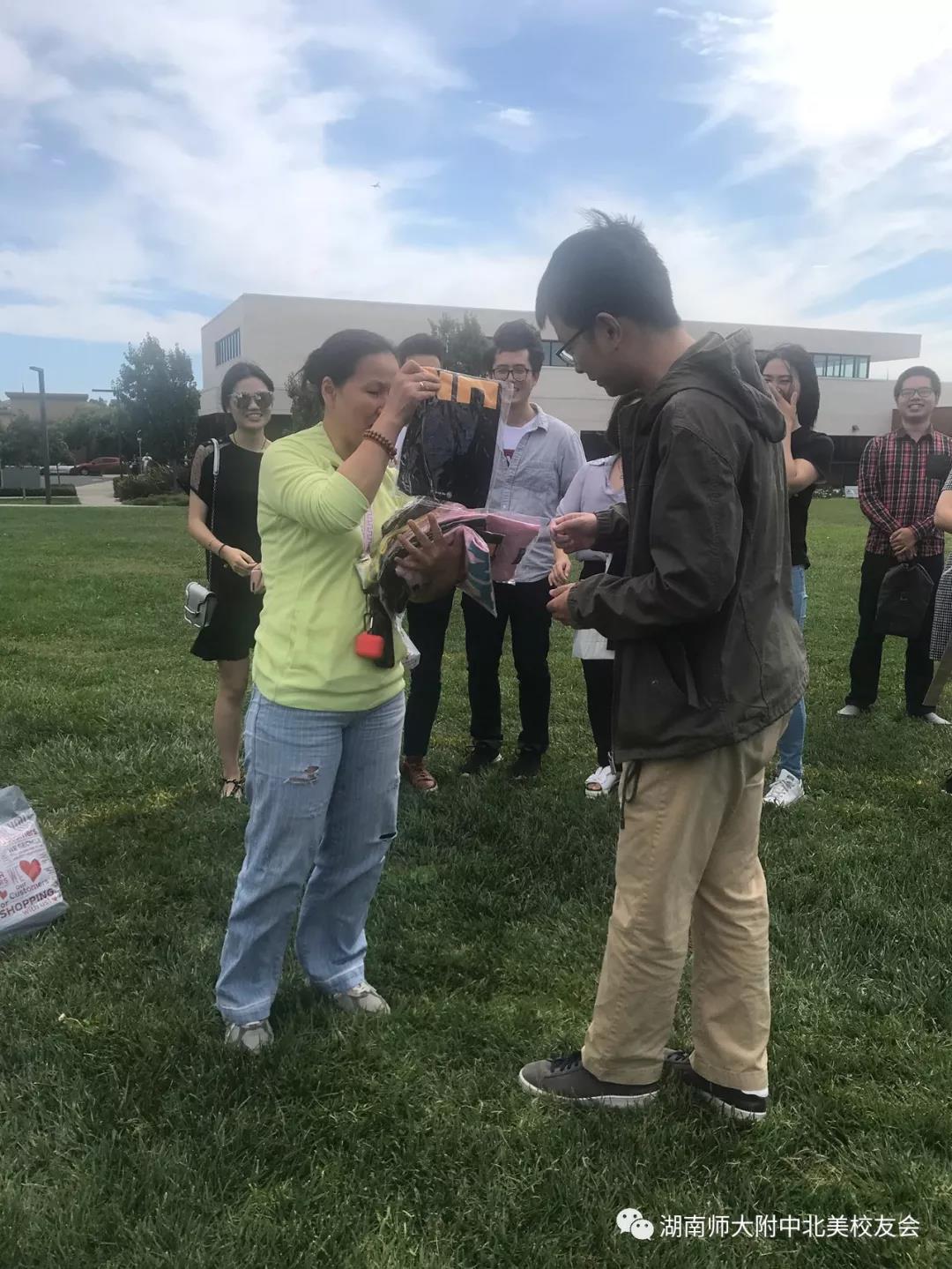 在圣塔克拉拉市眷湘餐厅品尝家乡味道后,校友们又在Live Oak公园参加了联谊会。今年参加联谊活动的校友有刚本科毕业的12级校友,也有正好从附中毕业30周年的校友。活动中,仇荣琦、倪蒙、陈璇、曹练成、刘厚麟、罗圆、胡哲、黄蓓蓓和易梦佳共9名幸运校友获得了校友会精心准备的附中文化衫。活动结束后,校友们在Live Oak公园集体合影留念并期待来年再聚。