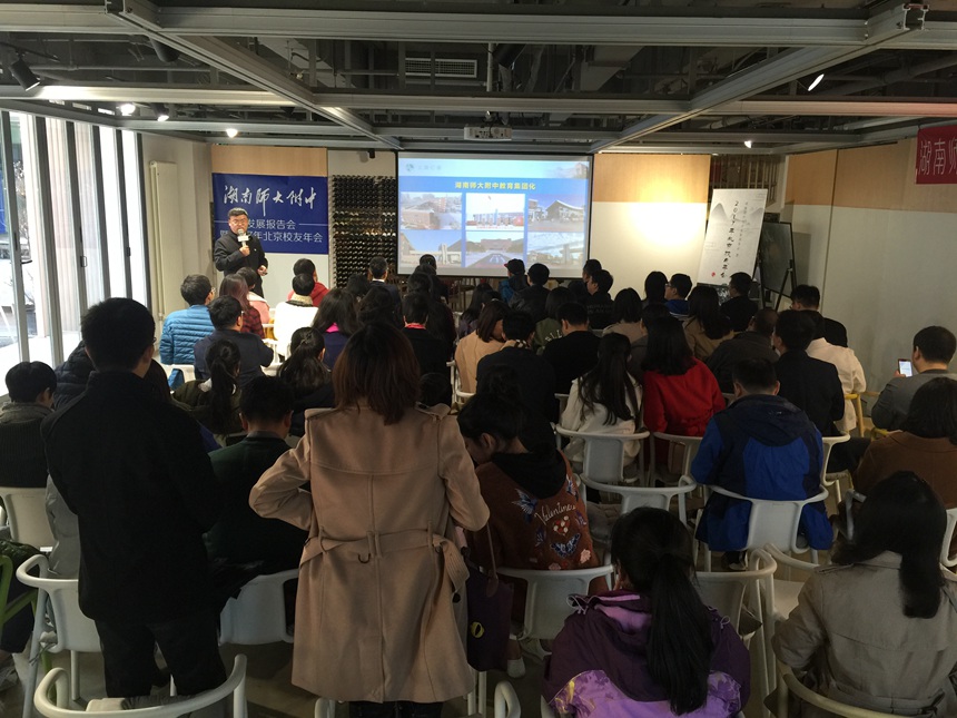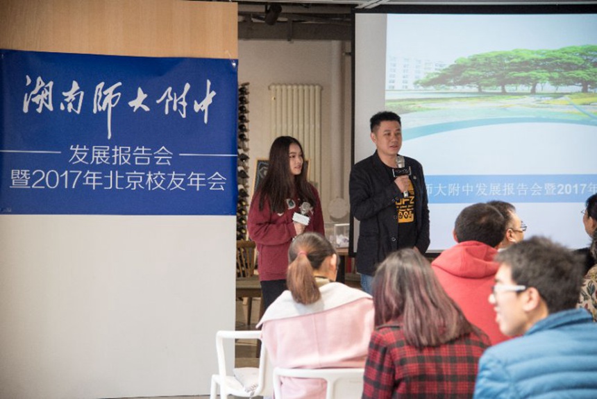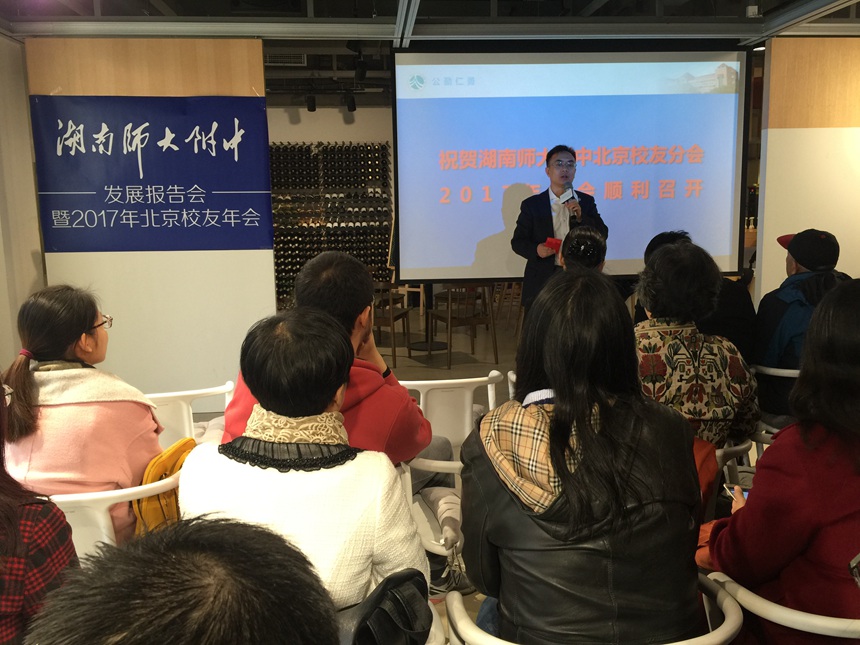 首先,陈迪勋副校长代表母校致辞,并以“麓山巍巍育养附中百年名校,勠力同心建研究型卓越高中”为题向与会在京校友通报附中的发展情况。陈副校长从百年附中历史和现状、优势和特色为引子,详细地介绍了附中近年来在现代教育实验学校建设和研究型卓越高中建设两个方面取得的巨大成绩。在场校友为母校的卓越成绩倍感自豪,纷纷祝福母校越来越好!