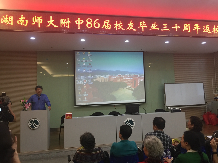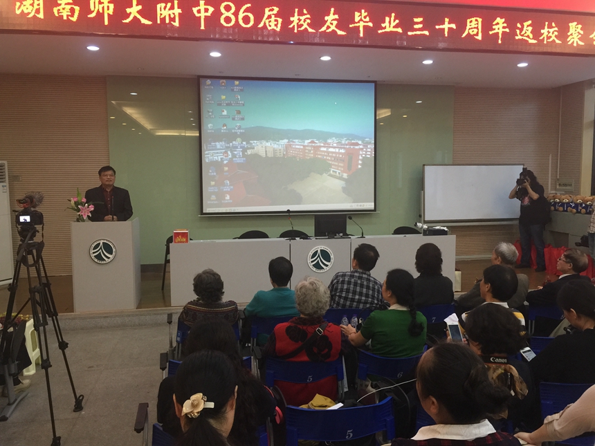 陈迪勋副校长在致辞中对86届校友们多年来对母校的关注和支持表示感谢。特别是学校建校110周年期间,86届校友热情积极为母校捐建了校训石,校训石既是学校的一道风景,也是对广大师生的一种激励,知名校友丁洪、卢宇彤、曾文、刘蓉等不辞辛苦多次往返学校,为在校学生作学术和成长报告,都表达了对母校的感恩之情。陈迪勋副校长还向大家介绍了学校近几年取得的不俗成绩。希望校友们加强与母校的联系,常回家看看,继续为母校的发展,添砖加瓦、建言献策,携手共创母校明天的辉煌。