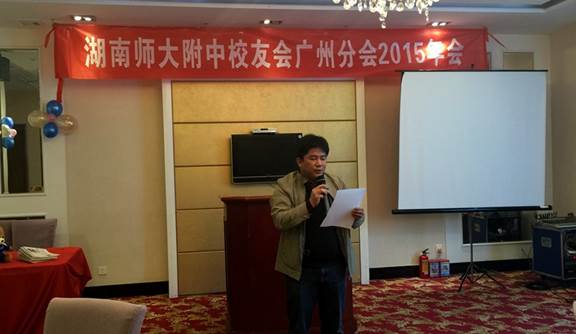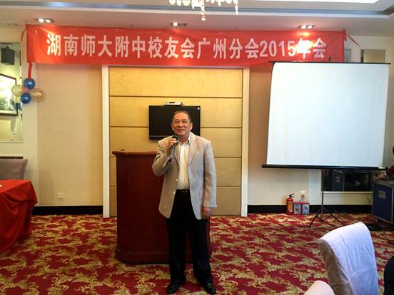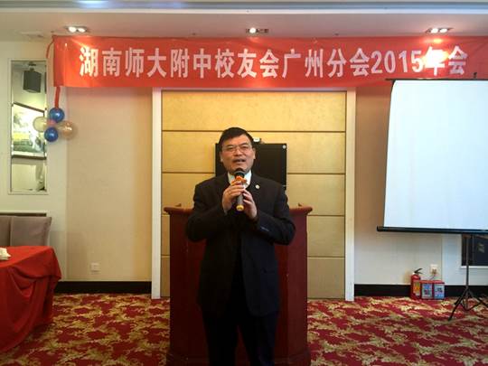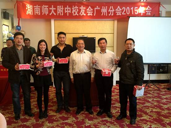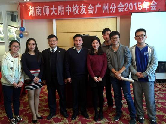 我校广州校友分会2015年年会于12月19日在羊城广州隆重召开。来自广州地区各行各业的近80位校友参加了大会。学校校长谢永红、副校长陈迪勋应邀出席大会。应邀出席大会的还有学校办公室主任莫晖、语文教研组副组长厉行威、校友会周晓芳老师以及曾在我校任教和工作的符开广、谢湘平老师。