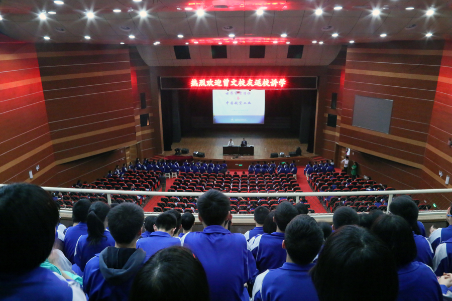 曾文校友为在场师生介绍了航空技术、对外贸易、企业管理、军事、国防、外交等多方面内容,极大开阔了师生们的视野。此外,他还以自己的求学和工作经历激励同学们奋发进取,赢得了在场师生经久不息的掌声。