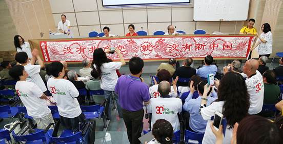 纪念会上还播放了同学们精心制作的记录84届同学附中校园六年中学生活的电子相册。在温馨、热烈的氛围中,同学们同唱《垄上行》等昔日校园歌曲,回忆美好的学生时代,彼此间致以最真挚的祝福。