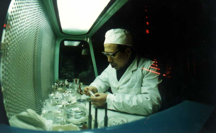 第二天,曲博士就“入乡随俗”,加入到了科研一线。他先是被分配到总成实验室,从装盒、旋螺钉、涂胶密封等小事做起,后来又负责激光陀螺测试、信号检测。“工程无小事!”这些看似琐碎的环节,都是激光陀螺研制生产不可或缺的。在这里工作半年后,曲博士掌握了激光陀螺的整体结构和工作原理,更加深了对工程技术的深刻认识。下半年,他又加入到激光陀螺镀膜实验室,开始了学习镀膜工艺,从真空技术到材料科学再到薄膜光学,每个学科都涉及到了,每个工艺环节都反复细致的摸索,年轻的曲博士快速成长了起来。
