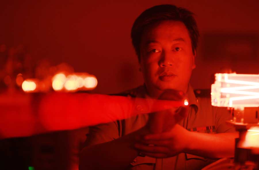 丁金星高级工程师在装配激光陀螺。资料图片